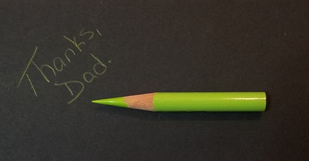 The pencil above is Berol Prismacolor PC 989 Chartreuse, the first pencil to retire from the set my father gave me in the early ’90s. I sharpened it for the final time last night, when I realized that the core would shatter if I did so again. It’s small, but not tiny: I could still use it if I wanted to, either with a pencil extender or a light grasp of my hand. But I have a small set of more modern Prismacolors from 2017 or so that includes the same color, so I removed the Chartreuse from that set and put this one in the tin in its stead. The newer one now sits in the old Berol box.