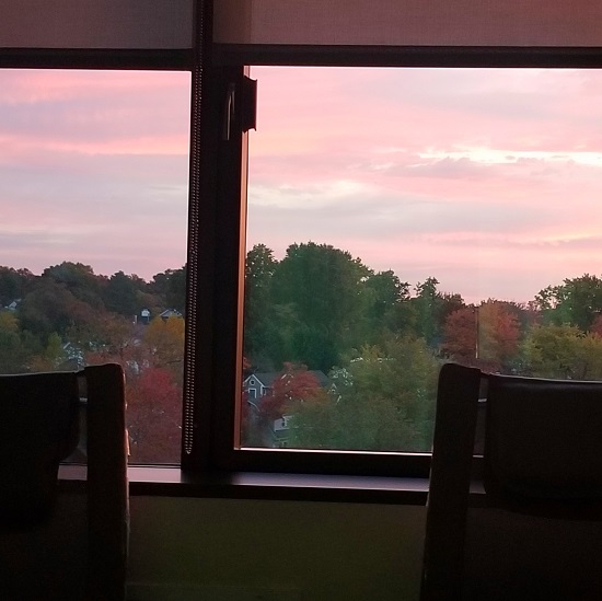 Even the view from the ICU beds at the local hospital is lovely at sunrise.